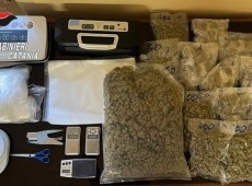 Dalla sostanza stupefacente sequestrata dai Carabinieri, per un peso complessivo di 2.330 grammi, si sarebbero potute ricavare circa 13.000 dosi per un introito di circa 70.000 euro. La droga nascosta nel divano e in camera da letto.