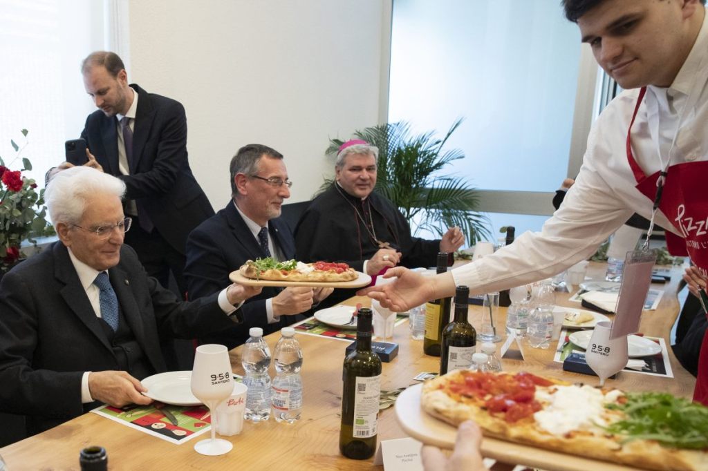 Il capo dello Stato ha visitato i locali e ha pranzato con i ragazzi che gli hanno dato il benvenuto urlando “Presidente, sei uno di noi”. Per l’occasione è stata creata una pizza speciale: la “Articolo 1” dedicata al primo articolo della Costituzione e realizzata con prodotti originari di territori confiscati alla Mafia e alla Camorra, tra i quali burrata campana e vino siciliano prodotto da Libera. “Grazie di avermi invitato all’inaugurazione di questo bellissimo e straordinario spazio non solo funzionale ma davvero bello, complimenti anche chi lo ha realizzato”, ha dichiarato il presidente Mattarella, esprimendo apprezzamento per la pizza. “Ho ammirato la vostra capacità, avete una professionalità di alto livello. Non mi stupisce che poco fa due ragazzi abbiano firmato poco fa un contratto a tempo indeterminato. Perchè avete professionalità e vi realizzate lavorando in maniera eccellente”, ha aggiunto.