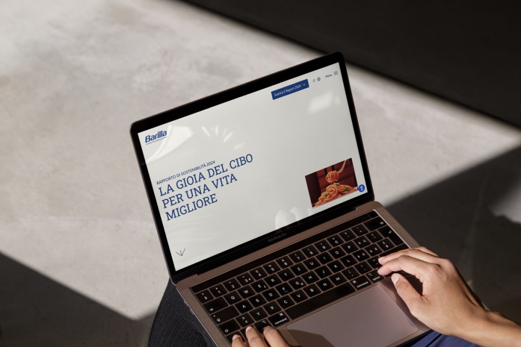 “Questo obiettivo è stato raggiunto svincolando il Bilancio dalla struttura del sito corporate, dedicando ad esso un minisito complementare al report cartaceo – spiega Barilla -. In questo modo, designer, creativi e sviluppatori dell’agenzia hanno potuto operare con maggiore libertà, facendo leva su strumenti quali animazioni, componenti aggiuntive e soluzioni visive originali non vincolate alle logiche della sua specifica UI. Consultabile sia in lingua italiana che in lingua inglese, il minisito adotta un approccio narrativo immersivo, con interfaccia full-screen e scroll verticale fluido che accompagna l’utente in modo naturale. Colori, font e stile tipici del linguaggio Barilla si sposano con un design pulito e responsive che garantisce accessibilità su tutti i dispositivi, coadiuvato da asset grafici e dalla possibilità di consultare video che rimarcano l’impegno passato e futuro di Barilla. Animazioni fluide, numeri dinamici e un’alternanza visiva ben calibrata rendono la fruizione coinvolgente e contribuiscono a veicolare i principali contenuti per mezzo di approfondimenti verticali dedicati a ciascun brand del Gruppo, ognuno con una storia di sostenibilità da raccontare”.