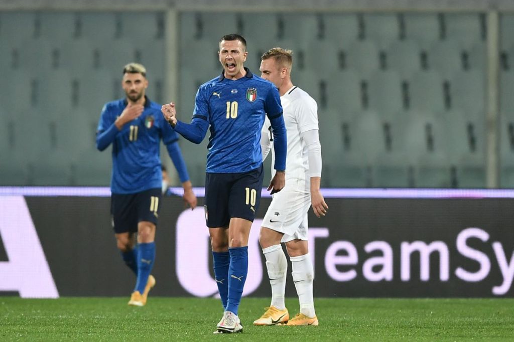 Nel primo quarto d’ora di gara l’unica emozione è quella del gol che apre le danze: Vincenzo Grifo va alla conclusione di prima intenzione dai 25 metri, palla che sbatte sul palo e finisce nel sacco al 14′ per la prima gioia in Nazionale del giocatore del Friburgo. Dopo l’1-0 l’Italia gioca a briglia sciolta e trova più spesso il pertugio per colpire. In ottima serata un Bernardeschi in cerca di riscatto dopo un periodo non semplice: l’ex Fiorentina si mette in proprio al 27′, converge da destra e beffa Meerits con un mancino preciso. Nella ripresa arrivano anche gli esordi assoluti di Pessina, Pellegri, Luca Pellegrini e Calabria dopo quello di Bastoni (titolare). L’Italia va più volte vicino al 3-0, che è solo questione di minuti. Gagliardini si incunea e viene sgambettato in area a metà secondo tempo: nessun dubbio per l’arbitro Obrenovic che decreta il penalty, su cui va Grifo per la doppietta personale al 75′. Al minuto 85 il neo-entrato Orsolini si guadagna il secondo rigore di serata e lo realizza con freddezza per il 4-0 finale.