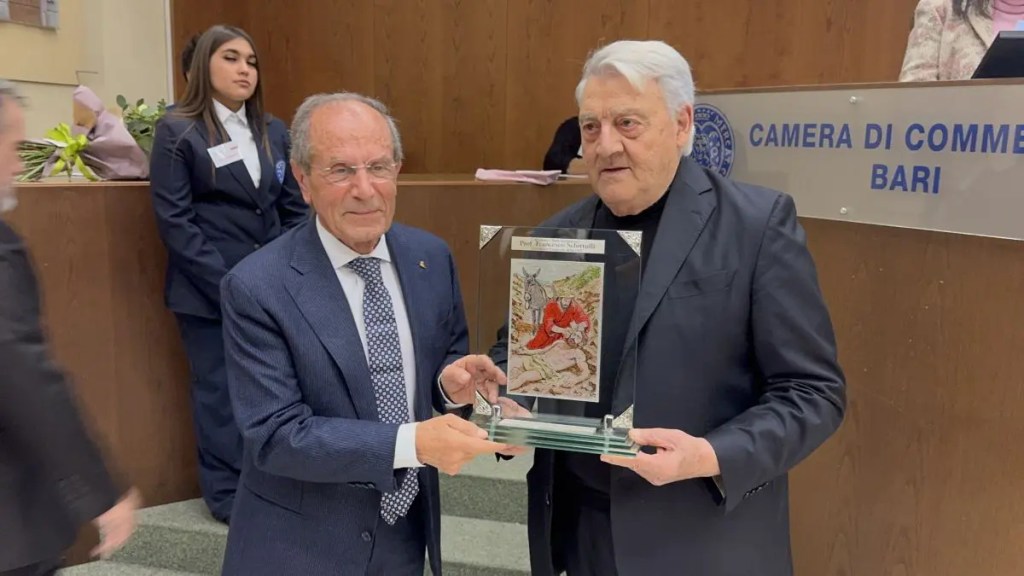 BARI (ITALPRESS) – “Una vita per vincere il cancro”. Il titolo di un libro, ma anche la missione a cui Francesco Schittulli ha dedicato la sua intera carriera. Il professore, presidente nazionale della Lega Italiana per la Lotta contro i Tumori (Lilt) ha presentato nella sala “Ambrosi” della Camera di Commercio di Bari il suo ultimo volume, il cui ricavato sarà interamente devoluto per la ricerca contro il cancro. Tanti i saluti istituzionali che hanno aperto l’evento: nella “doppia veste di amico, oltre che di presidente della Commissione ENVI” è intervenuto, tra gli altri, il prossimo presidente della Regione Puglia Antonio Decaro, che ha riconosciuto a Schittulli una profonda umanità.