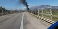 Una vettura è andata in fiamme. Sono intervenuti i vigili del fuoco e gli agenti della polizia stradale.