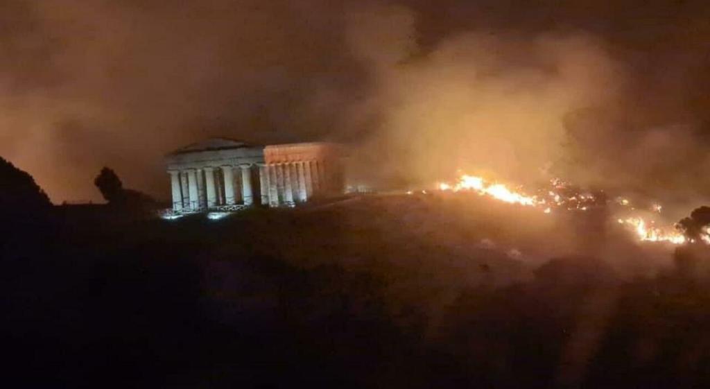 L’incendio è partito ieri dalla galleria di Segesta e in pochi minuti si è propagato all’interno del parco archeologico e nelle contrade limitrofe. Il tempio dorico stanotte era avvolto dal fuoco. Inutile la corsa contro il tempo degli operai della forestale, protezione civile vigili del fuoco mezzi aerei. Nelle zone limitrofe a Segesta sono state evacuate strutture turistiche e abitazioni.