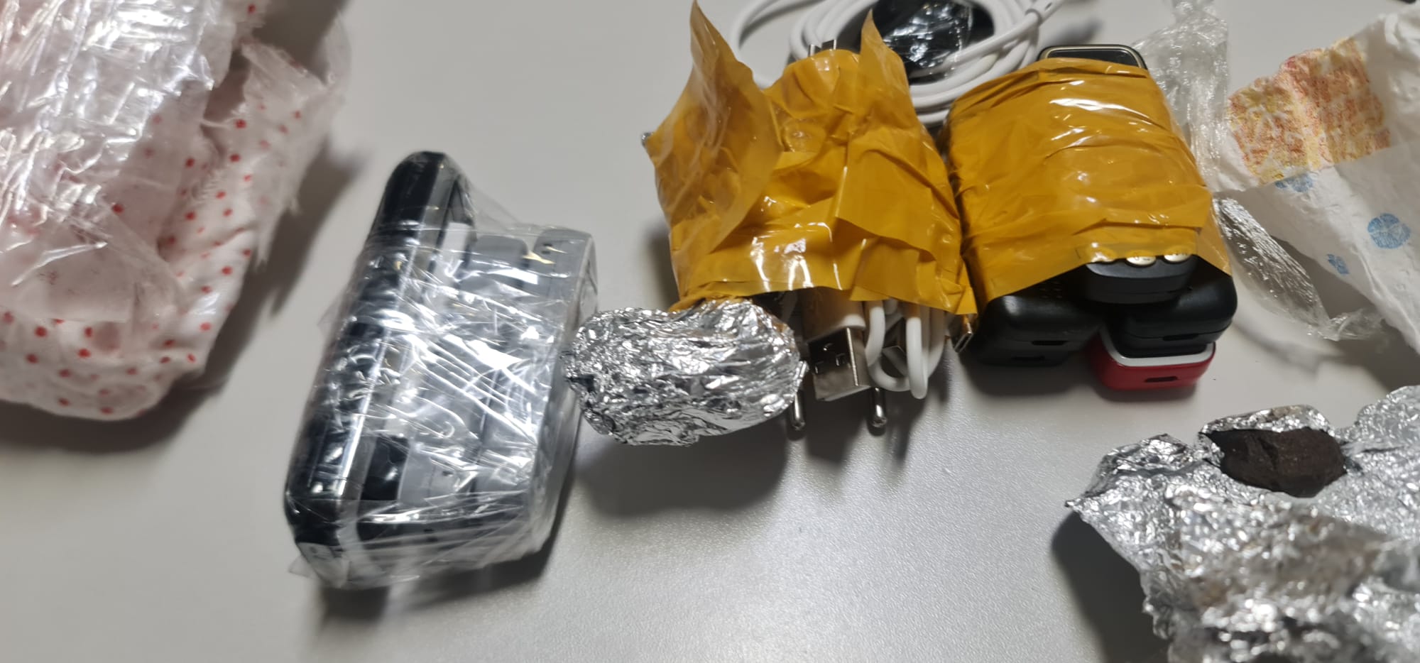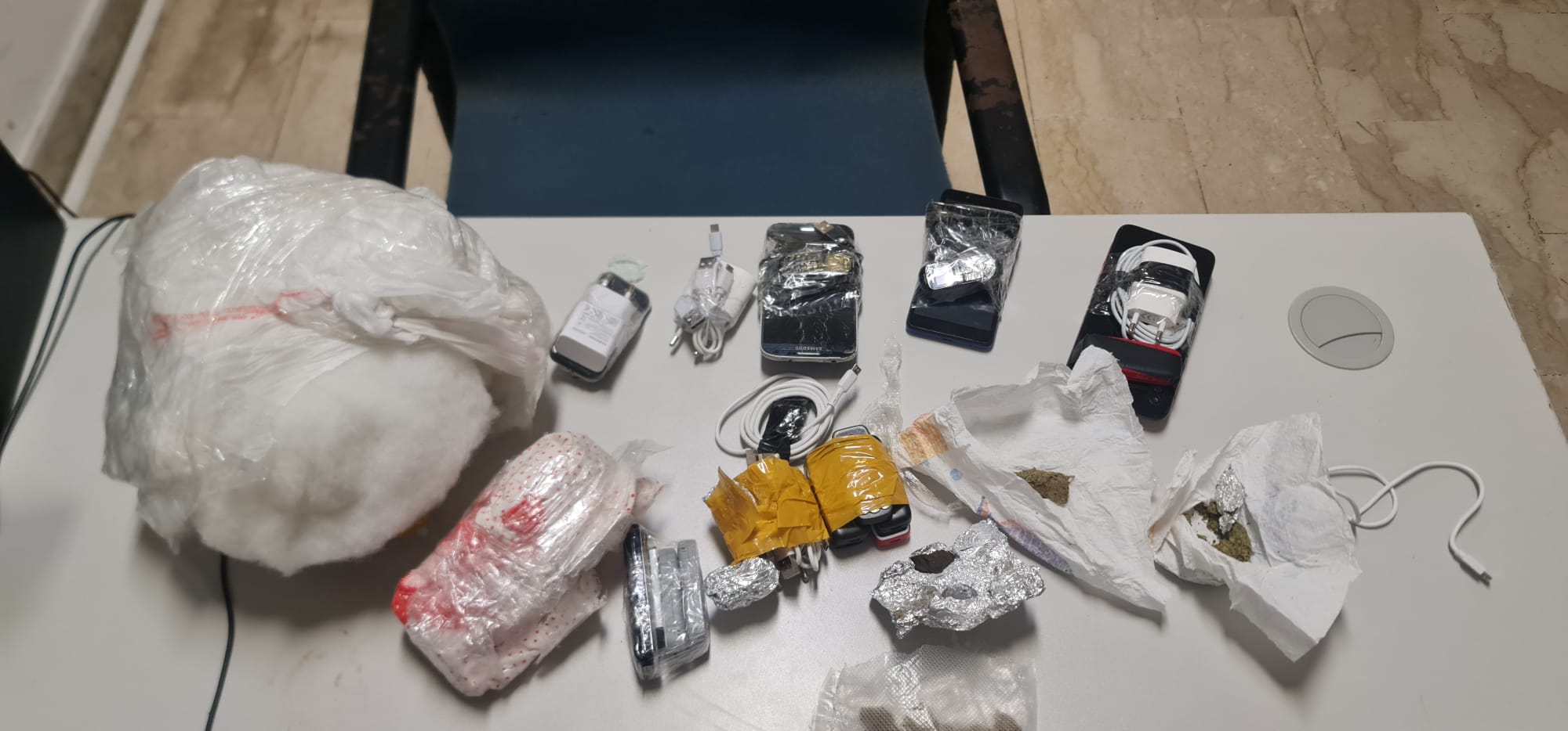 Gli agenti hanno quindi recuperato il pacco, di forma sferica, costituito da nastro da imballaggio e materiale antiurto, rinvenendo all’interno 13 microtelefoni, 4 smartphone, oltre a 10 grammi di hashish e 30 di marjuana, suddivisa in dosi. Le cinque persone sono state quindi accompagnate in Questura ed al termine degli accertamenti, sono state tratte in arresto per il delitto di detenzione ai fini di spaccio di stupefacenti in forma aggravata e denunciate per aver tentato di introdurre i telefoni in carcere.
