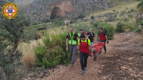 La donna, una 63enne Svizzera in escursione con un gruppo di amici, è scivolata mentre percorreva il sentiero riportando la sospetta distorsione del ginocchio sinistro. I compagni hanno lanciato l’allarme chiamando il numero unico di emergenza 112. La centrale del 118 ha chiesto l’intervento del Soccorso Alpino che è intervenuto con due squadre. I tecnici hanno raggiunto la donna a piedi dall’ingresso Nord, le hanno immobilizzato la gamba e l’hanno caricata su una speciale barella “Lecco”. Una barella dotata di una ruota centrale, particolarmente adatta alla movimentazione su terreni impervi. L’infortunata è stata trasportata a mano per circa un chilometro e mezzo fino all’ingresso lato San Vito Lo Capo. Qui, ad attenderla, c’era un’ambulanza del 118 che l’ha trasferita all’ospedale di Trapani.