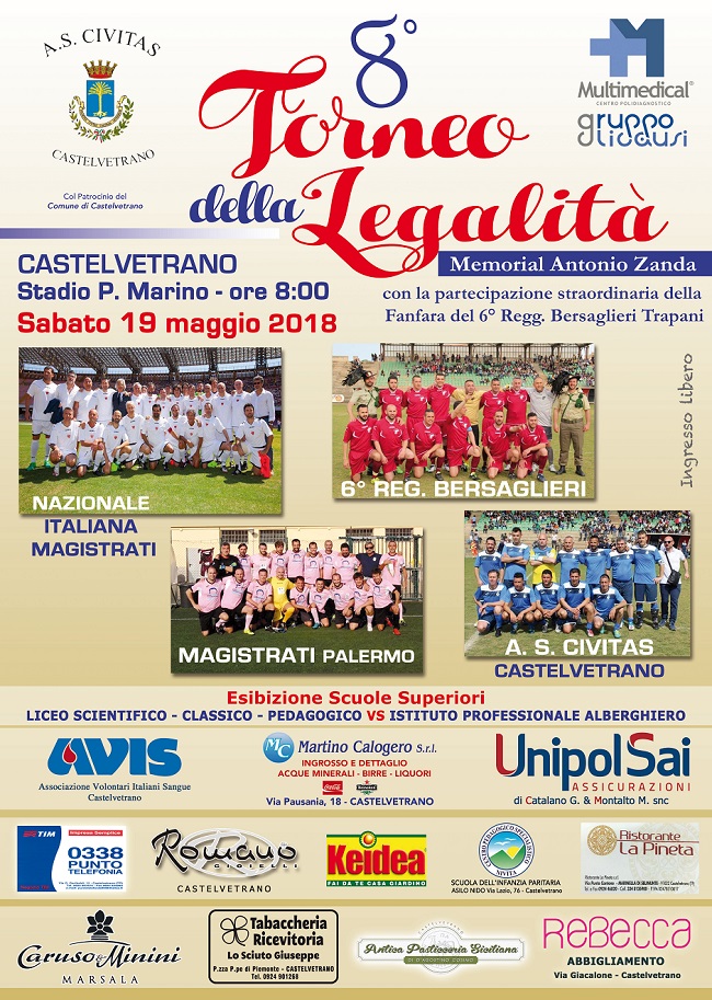 In campo si sfideranno la Nazionale Italiana Magistrati; i Magistrati del Distretto di Corte d’Appello di Palermo, guidati da. Matteo Frasca; i Bersaglieri del 6° Reggimento di Trapani; l’Associazione Sportiva Civitas di Castelvetrano, che ha organizzato l’evento.