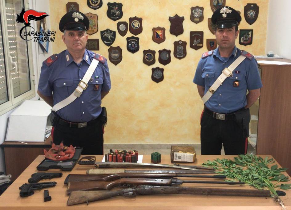 L’uomo, all’inizio delle operazioni aveva spontaneamente consegnato solo le carabine, tuttavia, il fiuto del pastore tedesco in servizio alle unità cinofile di Palermo, ha permesso di condurre i militari in altri punti dell’abitazione e di rinvenire non solo le altre armi, ma anche due piante di marijuana di altezza media di 85 cm, su un appezzamento di terreno adiacente all’abitazione.
