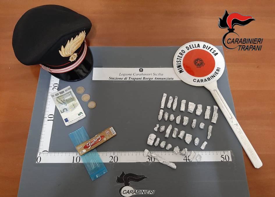 I Carabinieri della Stazione di Trapani Borgo Annunziata, nel corso di un servizio finalizzato al contrasto e alla repressione di reati in materia di sostanze stupefacenti, hanno arrestato A.A., trapanese, 20 anni, mentre un minorenne, anch’egli trapanese, 16 anni, è stato deferito in stato di libertà.