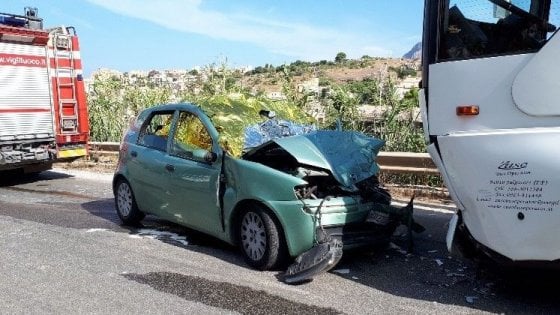 L’auto, per cause in corso di accertamento da parte dei carabinieri, si è scontrata con un pullman. Per liberare i passeggeri dall’utilitaria si è reso necessario l’intervento dei vigili del fuoco.