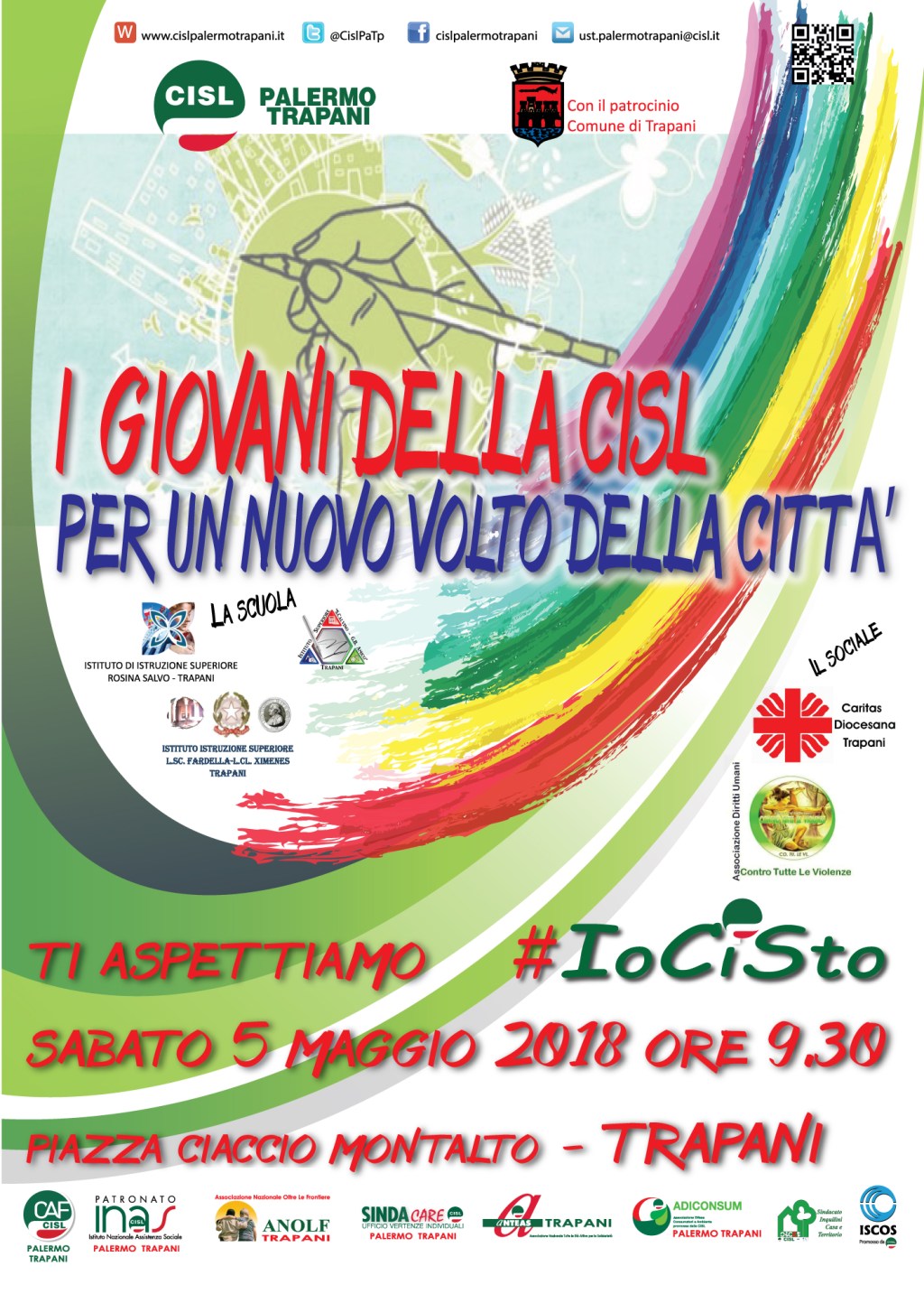 “I giovani della CISL per un nuovo volto della città”, sarà infatti la manifestazione che, con la partecipazione del Comune di Trapani, l’Arcidiocesi di Trapani, la Caritas diocesana con il Servizio Civile, l’Associazione Co.Tu.le.Vi, il Liceo “Fardella-Ximenes”, l’Istituto Tecnico “S.Calvino-GB.Amico” e l’Istituto Superiore “Rosina Salvo”, animerà la mattina di sabato 5 maggio della piazza antistante la sede del sindacato a Trapani dalle ore 9, piazza Ciaccio Montalto, che per l’occasione sarà rivalorizzata proprio grazie all’impegno dei giovani del sindacato.