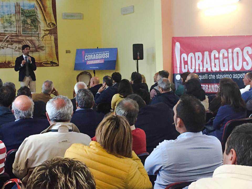 In biblioteca comunale, in una sala gremita, Ferrandelli, non ha fatto il “comizio”, “non ne possiamo più delle chiacchiere” ha detto, ha scelto invece di raccontare quello che i Coraggiosi vogliono fare per cambiare la Sicilia con quattro video: il discorso ai laureandi di Steve Jobs a Stanford dove il fondatore di Apple invita i giovani ad essere folli ed affamati; l’intervista a Leonardo Sciascia dove lo scrittore parla della Sicilia e del problema più grande che hanno i siciliani e cioè che non credono che le idee possano cambiare il mondo, l’intervista a Giovanni Falcone che parla di coraggio e, infine, il video che racconta le gesta della squadra di Ranieri.