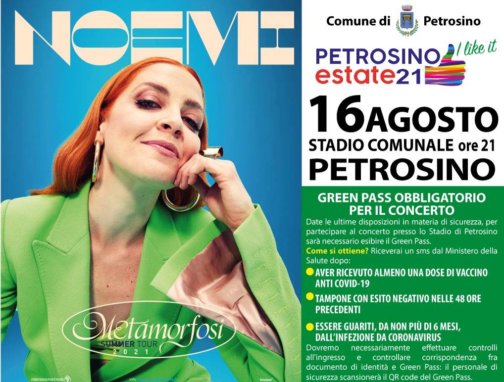 Lo stadio comunale di Petrosino ospiterà le note di Noemi che si esibirà lunedì prossimo, 16 agosto, alle 21,30. Il concerto sarà uno degli appuntamenti di punta dell’estate nel piccolo centro in provincia di Trapani. A Petrosino, la cantante si esibirà in una delle tappe del suo Metamorfosi Summer Tour 2021