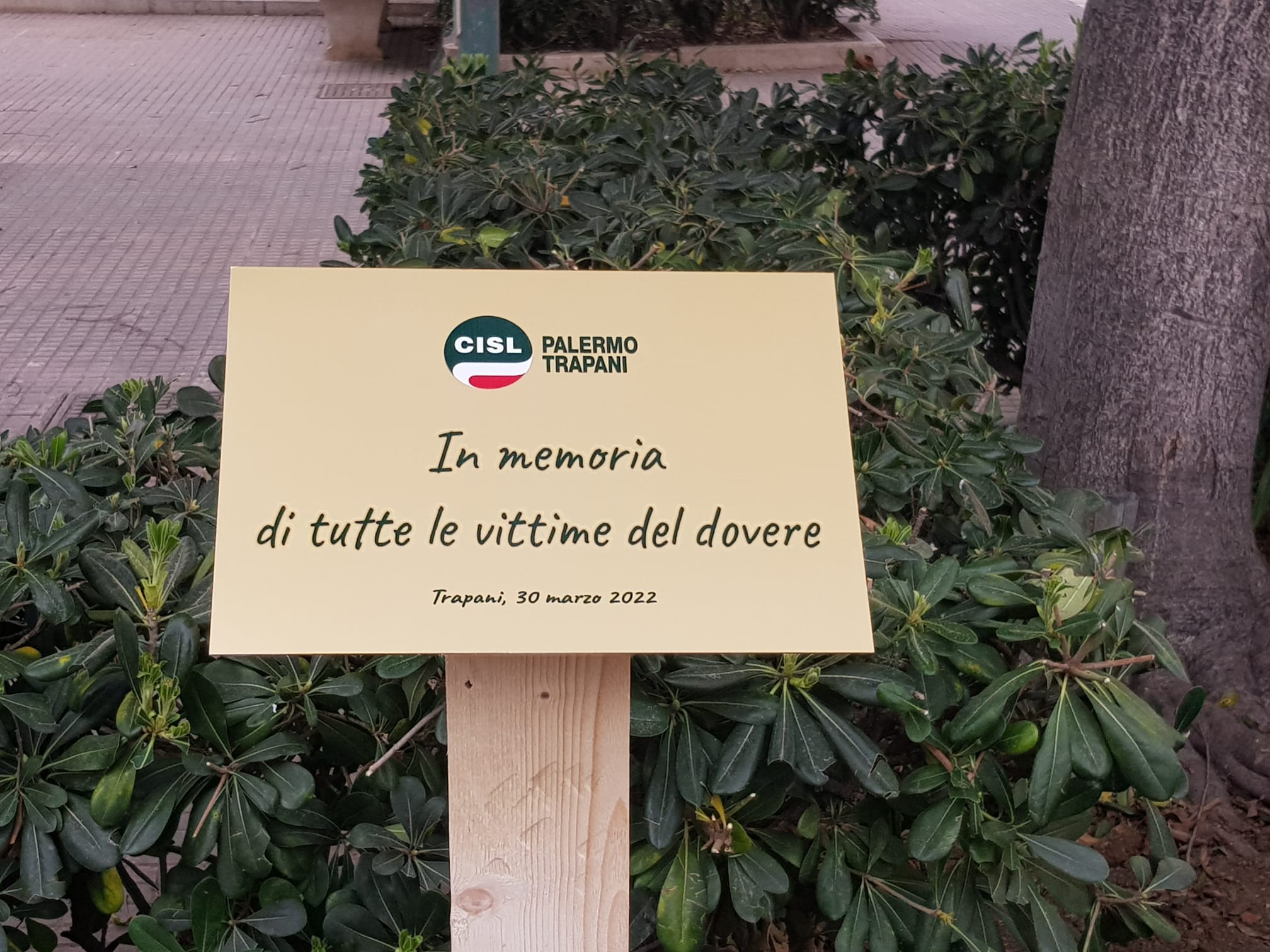 I dirigenti della Cisl, alla presenza del segretario generale Cisl Palermo Trapani Leonardo La Piana, del sindaco della città Giacomo Tranchida, del direttore dell’Ufficio pastorale per il Lavoro della diocesi di Trapani Gino Gandolfo e del vice presidente vicario di Sicindustria Trapani Filippo Amodeo, hanno sistemato una targa commemorativa dedicata a chi ha perso la vita a causa degli incidenti sul lavoro. Un’altra targa è stata sistemata per rendere visibile ai cittadini l’adozione dell’area dedicata al giudice ucciso dalla mafia a Valderice il 25 gennaio del 1983.