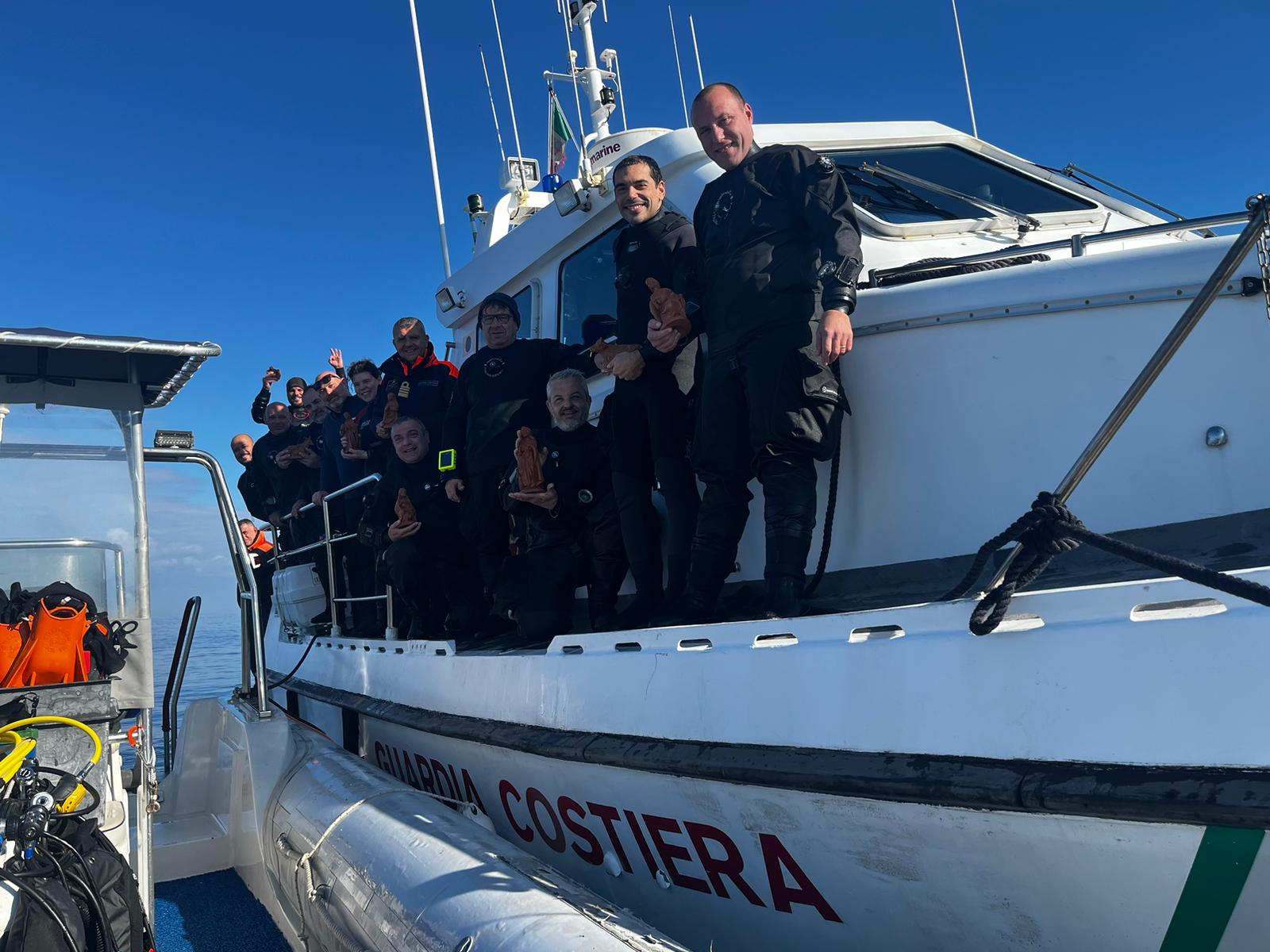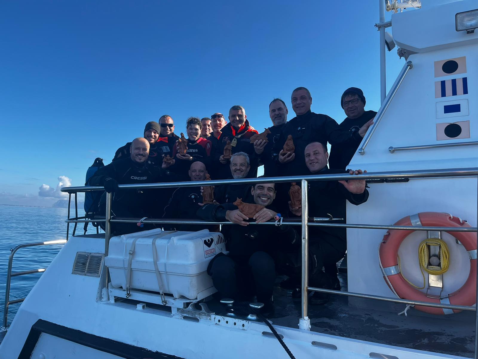 Nasce il primo presepe subacqueo nel mare di Trapani. Questa mattina i soci del centro immersioni e scuola sub “Free divers Italy” hanno posizionato le statuine nei fondali del mare in prossimità dello “Scoglio degli asinelli”, a circa 2,5 miglia a nord del porto. All’iniziativa, condivisa ed appoggiata dal Comune di Trapani, ha partecipato l’equipaggio della motovedetta Sar/Svh Cp 876 della capitaneria di porto di Trapani. A bordo anche il capo del compartimento marittimo, il capitano di Vascello Guglielmo Cassone. Ha voluto essere personalmente presente a questo particolare e significativo gesto simbolico, capace di portare la tradizione del Natale anche in mare.