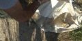 Quando da un sacco ha sentito e visto che qualcosa si muoveva. E’ riuscito a recuperare il sacco dentro il fiume e trovare solo uno dei quattro cuccioli vivo.