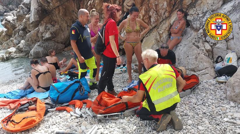 La donna, una quarantottenne di Ancona in escursione con un gruppo di amici, è scivolata sul sentiero mentre scendeva verso la spiaggetta, riportando la sospetta frattura della caviglia sinistra.