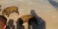 La rara presenza dei cuccioli di animale non è passata inosservata ai bagnanti che hanno filmato l’evento e postato su Facebook.