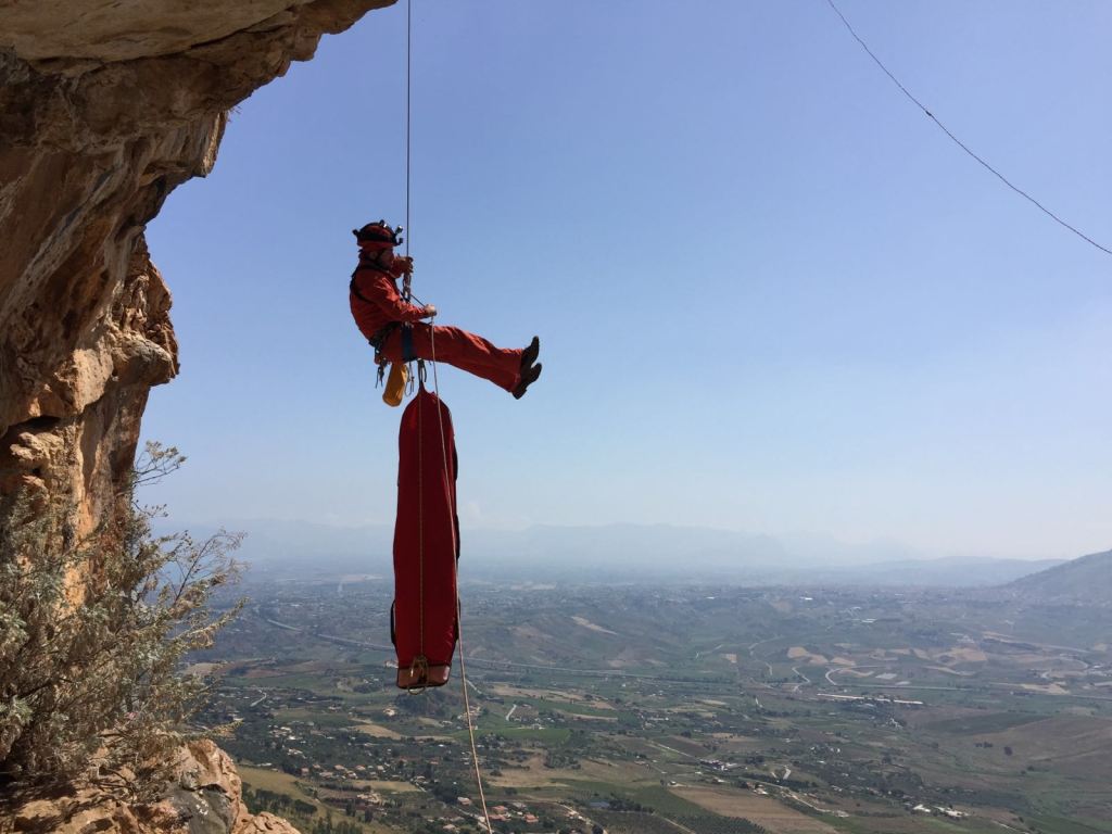 E’ lo scenario dell’esercitazione regionale che il Corpo nazionale soccorso alpino e speleologico (Cnsas) sta svolgendo nella grotta “Abisso dei cocci”, sul Monte Inici, nel comune di Castellammare del Golfo, che ha uno sviluppo superiore ai 2 km, una profondità di circa 305 metri, con un ingresso in parete a cui si può accedere dal basso con un’arrampicata di circa 30 metri o dall’alto con una calata di circa 70 metri.